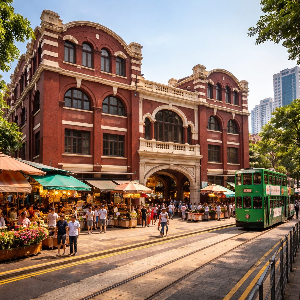 🏛️✨ A real Old-HK market hall in Sheung Wan. 🧵 Fabric finds • little stalls • calm heritage vibes 👉 Perfect quick stop before dinner • walk in and explore — 🏛️✨ 上環的老香港市集建築,氣氛很真。 🧵 布料/小攤檔 • 慢慢逛 • 很有年代感 👉 晚餐前順路一站剛剛好 • 進去逛逛